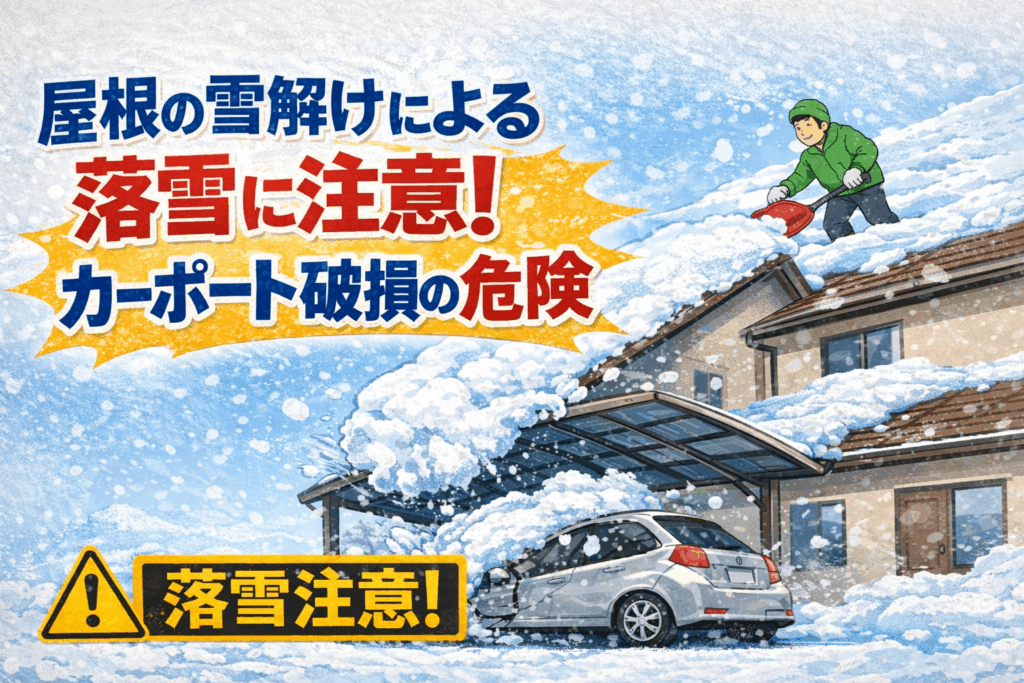 この落雪がカーポートの屋根に直撃すると、屋根材が割れたり、柱が曲がったりするなど大きな破損につながるケースも少なくありません。特にアルミ製のカーポートは衝撃に弱く、修理費用が高額になることもあります。